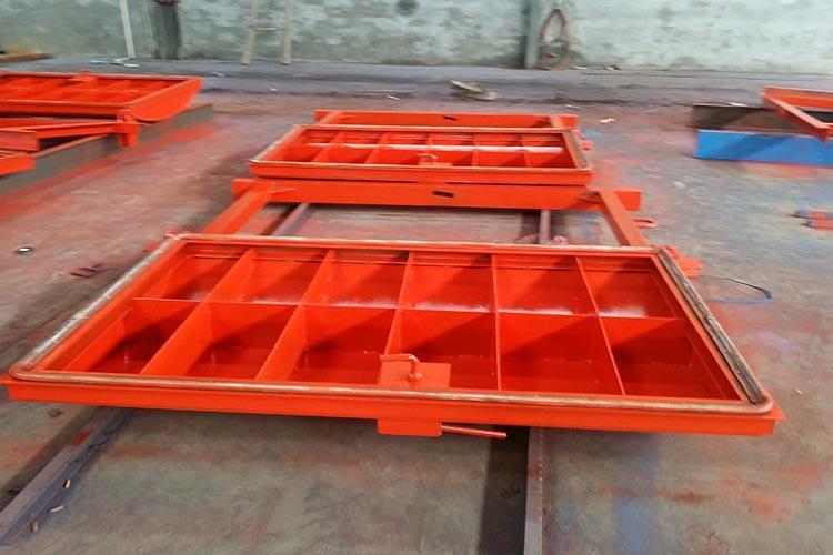 抗沖擊波密閉門用于井下爆炸材料庫和爆炸材料發(fā)放硐室,起隔離作用阻止爆炸沖擊波及爆炸產(chǎn)生的火焰、有毒氣體向外部巷道擴散,由總回風道排出,抗沖擊超壓能力為2500kpa。抗沖擊波密閉門不但有抵抗沖擊波的能力,還具有通過活門張開的角度大小來調節(jié)庫房通風量的作用,庫房內發(fā)生火情時,關閉通風孔起隔離作用,可以說是一舉兩得的好門。