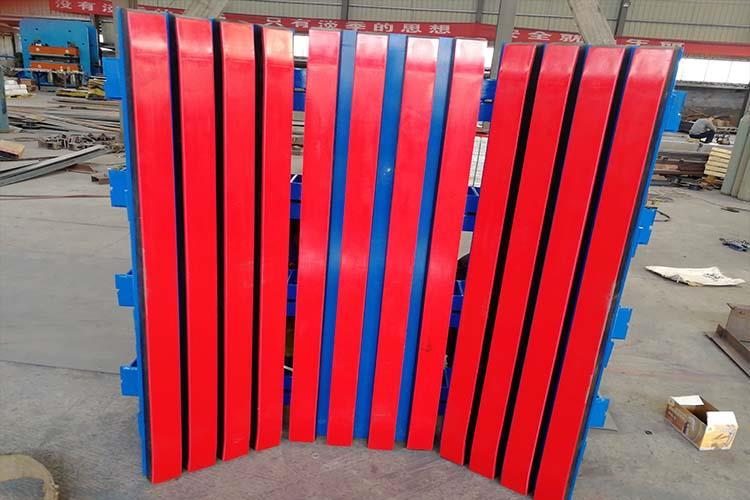 彈簧式緩沖床在原來緩沖床床體下面增加了一種裝置—彈簧緩沖裝置,這樣做用于輸送物料大、落差高的情況。有效提高了對落料的緩沖效果,同時也提高了緩沖床自身的抗沖擊強度,延長了緩沖床的壽命。相應地提高了整個輸送系統的工作效率,安全性高。彈簧式緩沖床適用于各類帶式輸送機,特別適用于長距離、高運速、大運量、高強度、工況惡劣的帶式輸送機。